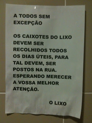 Tenho um carinho muito especial por este aviso. Não é por ser incompreensível, mas apenas por ter sido escrito por alguém da minha equipa, que eu não sei quem foi, e não me parece que o dito cujo se vá denunciar...