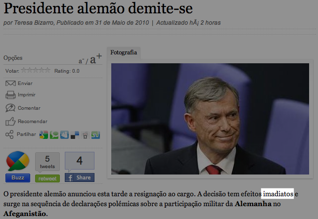 O Jornal Público decidiu publicá-la. Sem ter tido a gentileza de pedir (a cedência teria sido imediata), mas mais grave do que isso, decidiu dar-lhe o nome de outro autor. Integrada na aplicação iPhone que se abastece de conteúdo no site do jornal, cá está a foto, distorcida (parecia mal quebrar o template do formato da imagem), numa notícia assinada por Inês Boaventura e os créditos da imagem em nome de Miguel Manso.