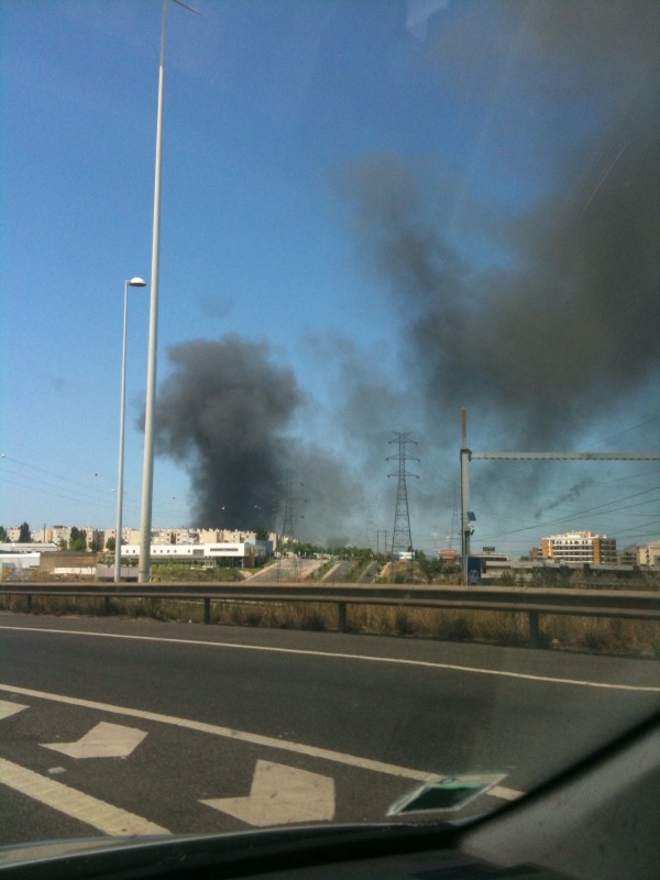 Esta foto foi captada por mim mesmo, ao início desta tarde à saída da Ponte Vasco da Gama e ilustrava o decorrer do violento incêndio que deflagrou na empresa IPODEC em Sacavém. Foi "tuítada" segundos depois de ter sido feita e o emissor, eu mesmo, tinha captado uma série de cinco fotografias que estão na timeline da minha conta de Twitter. Foi captada com a (minha) viatura em movimento e a bordo viajava mais uma pessoa.