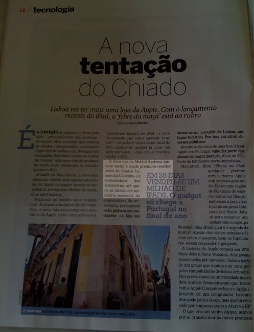 A jornalista (ela que me desculpe se me equivoco...) Sara Ribeiro, escreve na Revista TABU do Jornal SOL, um conveniente texto sobre a Apple e a abertura de um novo Apple Premium Reseller no Chiado. Eticamente, parece-me, haveria bastante a dizer sobre este artigo, mas ninguém me encomendou o sermão de assessoria de imprensa e como nem a Comissão Parlamentar de Inquérito sabe quem são os accionistas da ONGOING, não sou eu que agora me vou deitar a adivinhar. Concentremo-nos no belíssimo trabalho de investigação descrito no texto. "...A nova loja ... junta-se assim à Apple Premium Reseller Store do Centro Comercial Colombo e à revendedora das Amoreiras, até agora as únicas em território nacional...". Sara, o meu avô dir-lhe-ia bem pode limpar as mãos à parede! Não diga a ninguém, mas a "Revendedora das Amoreiras" encerrou as portas há quase dois anos e eu que até sou ceguinho, conto em território nacional mais TRÊS Apple Premium Reseller. Eu sei que dá jeito parecerem menos, mas fica a dica.