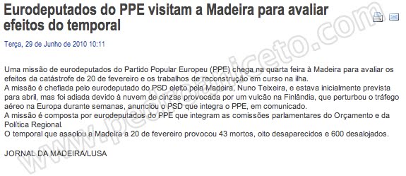 Aquilo que foi feito hoje pela conta Twitter do Grupo Parlamentar do Partido Social Democrata a propósito da morte de José Saramago, é um desrespeito e uma absoluta falta do mais elementar princípio de responsabilidade institucional. Como alguém disse no próprio Twitter (e perdoem-me que não me lembro do nome do autor), "Não são comediantes, são parlamentares". O tweet rapidamente foi retirado, esfumou-se, como rapidamente se esfuma a memória eleitoral, mas fica aqui para referência futura. (Imagem via @31dasarrafada)