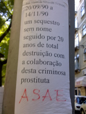 Adenda: Toda esta teoria abanou com um comentário no Twitter por parte de uma eminente cientista que me disse em singelos duzentos e oitenta caracteres que eu poderia estar completamente equivocado. Ela não disse "equivocado", sou eu apenas que adorno o texto com o vocábulo. MiszQ, que sabe mais de VIH-SIDA que eu e todos vós juntos, deitou à frase, como ela mesmo diz e bem, um "olhar" profissional. Que pode muito bem tratar-se de alguém infectado com o vírus por uma prostituta (Os 20 anos de total destruição fazem assim todo o sentido...) que encontrou numas largas dezenas de folhas coladas por ali, uma forma de expressar a sua fúria. Nunca saberemos.