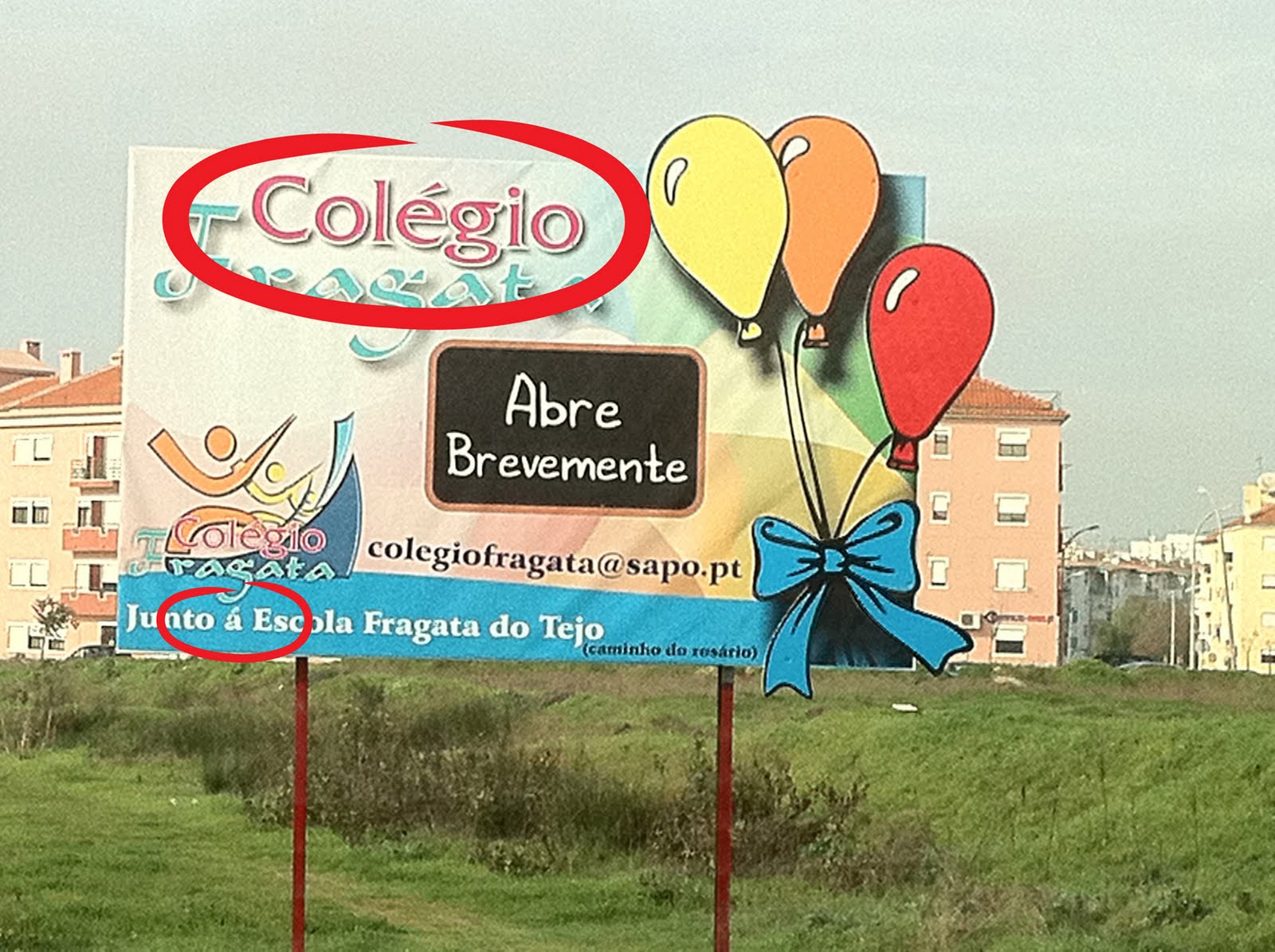 Falei ontem com a dona deste cartaz. Em três semanas de exposição ninguém tinha dado pelo erro, e foi uma visita a este blog que lhe permitiu detectá-lo e retirar o mesmo da montra. Neste caso pode perfeitamente acontecer o mesmo. Nem sequer era caso virgem, esteve um toldo no Rossio durante 14 (!) anos com um erro similar nunca detectado. Santa Iria De Azóia, imagem de Paula Pico