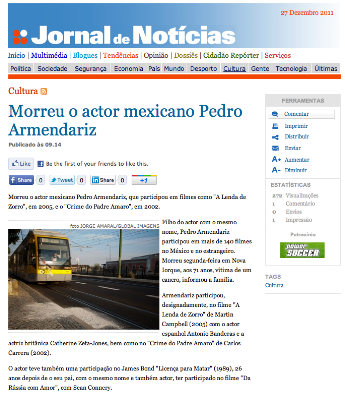 Deixai-me adivinhar... Pedro Armendariz morreu esmagado por um eléctrico que ia à desfilada para Algés. Quem diz Algés, diz Santo Amaro. Quem diz Amaro, diz Crime... JN Online, imagem enviada por André Carvalho
