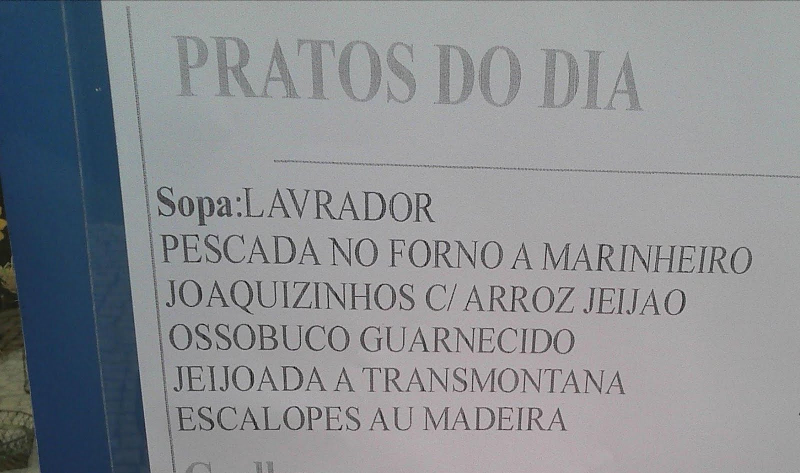 Anúncio em montra de restaurante da Baixa de Lisboa. Imagem enviada pela leitora Madalena Mota.