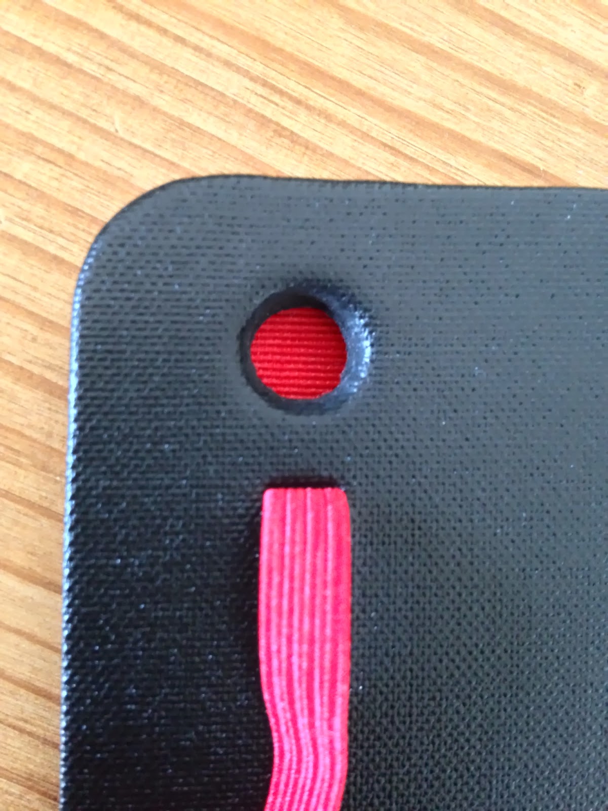 A capa de iPhone (no caso um iPhone 5), com a colocação do elástico de fecho na diagonal.