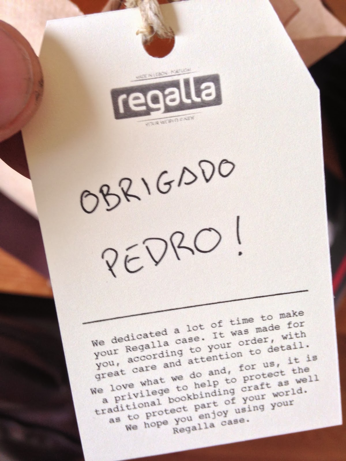 Chegaram as minhas capas http://www.regalla.pt. Quatro dias depois da encomenda ter sido feita no site (onde, recordo, existem em ambos os modelos alguns pormenores que podem (e devem) ser decididos pelos seus futuros proprietários (como a cor interior - brevemente também a exterior -, a cor do elástico e sua colocação na capa, entre outros aspectos), as mesmas foram entregues. Como tenho salientado, o processo de fabrico das capas Regalla é inteiramente artesanal. Isso manifesta-se no produto, mas também - e claramente - no requinte de algumas características do que chega às mãos do cliente. As capas chegam embaladas de forma simples revelando desde logo o desvelo com que o processo foi conduzido. Quando são retiradas do plástico protector (e chovia bem no dia em que me chegaram às mãos), fica-se com a sensação comprovada de que não se trata de um produto de massas. O saco vem personalizado com uma etiqueta do fabricante e em cada produto, uma outra etiqueta recorda-nos as especificações que pedimos. E, surpresa das surpresas, percebemos que o produto é numerado e é acompanhado de uma pequena surpresa (que não revelo para não ser desmancha prazeres...).