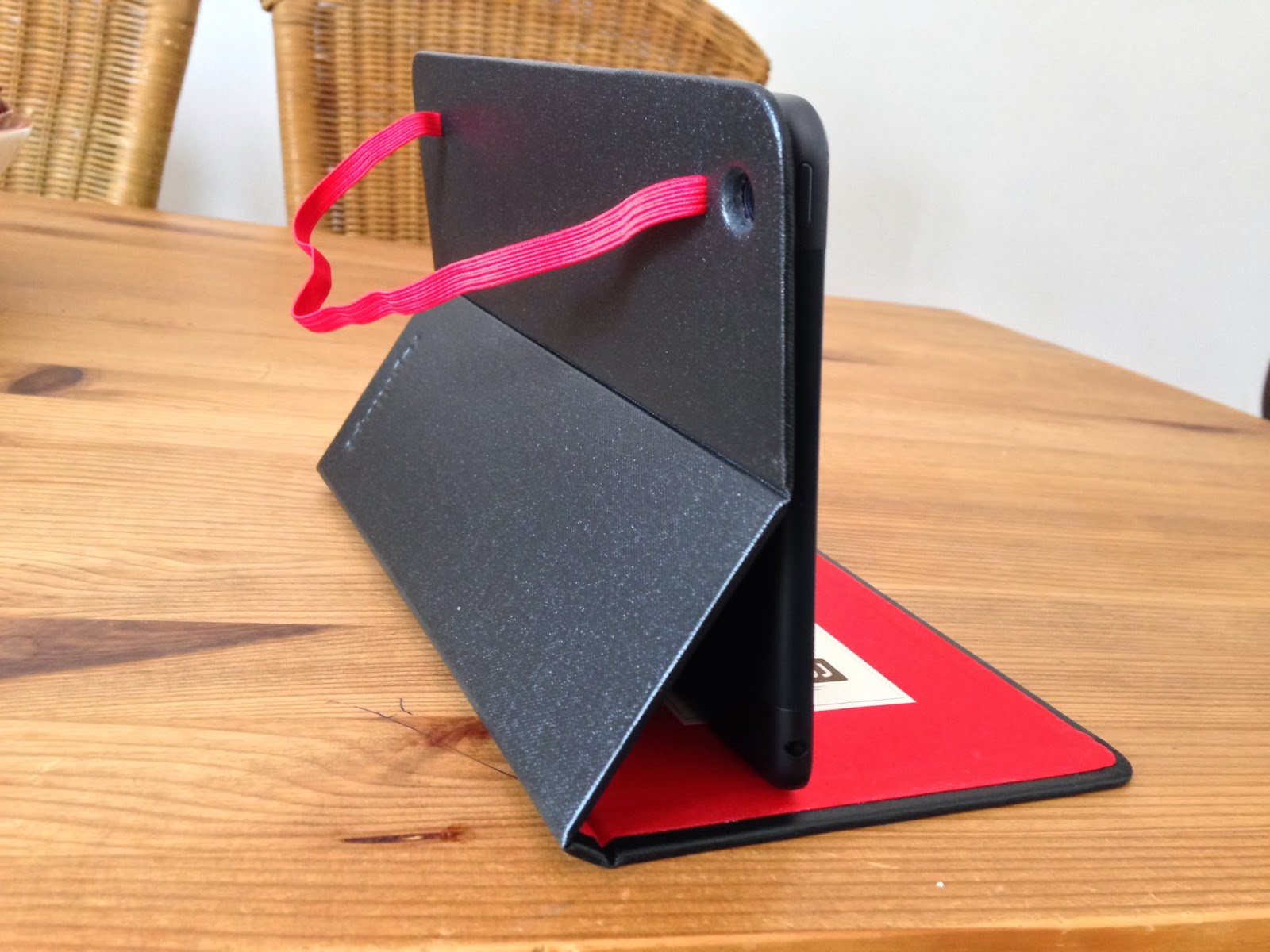 Como se comporta o iPad no modo "Stand"? Os magnetos embutidos na capa a cerca de 2/3 da sua largura, seguram eficazmente o aparelho na vertical, sem risco de "escorregamento". O modo "Stand" tem duas posições, uma para superficie plana e outro bastante cómodo se estivermos sentados ou mesmo deitados...
