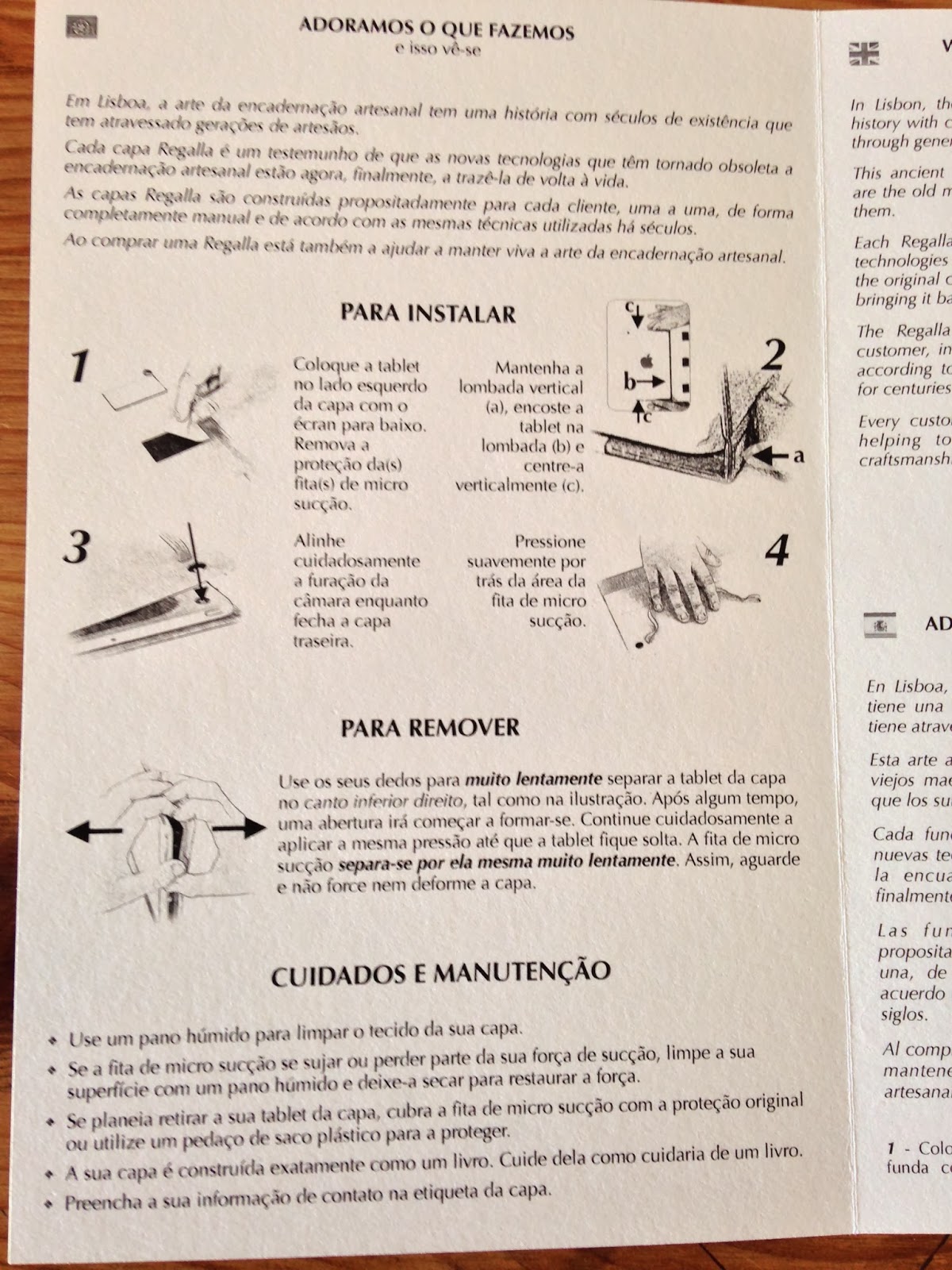 Instruções de utilização e manutenção em várias línguas e cobrindo aspectos incomuns