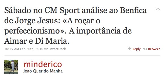 Quando ontem ao final do dia eu recebi isto na minha mailbox, pensei: "Alguém vai ter de me dar explicações...". Não é de hoje que eu digo que o site do meu clube é um valente monte de estrume quando comparado com outros clubes de muito menor dimensão, sobretudo clubes estrangeiros. Já em tempos tinha tido este tipo de conversa com gente com responsabilidades na matéria, pessoas que me transmitiram que havia contratos em vigor, herdados de tempos mais negros na vida do clube. Não me convenceu o argumentário, afinal de contas andam por aí sites não oficiais com mais e melhor conteúdo e não se consegue entender a razão de tão pouca evolução nesta questão. É comum acontecer que, sendo a empresa a mesma a gerir conteúdos de pelo menos três grandes clubes, se troque um link (como já sucedeu em questões comerciais) e se vá parar a um local menos recomendável a espíritos susceptíveis. São pequenas falhas, eventualmente remíveis. Mas para esta não consigo vislumbrar perdão algum. Milhares largos de benfiquistas foram brindados ontem à tarde com a tradicional newsletter do clube, cujo conteúdo era, o da newsletter de um dos seus rivais. A Direcção do Sport Lisboa e Benfica SAD anunciou já a não renovação contratual deste serviço, decisão que aplaudo e prevê intentar judicialmente contra a empresa em causa.