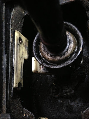 Poucas coisas me foram escondidas quando comprei este carro. Uma delas declarava categoricamente haver um "mecanismo estragado" na caixa de velocidades que fazia com que ao engrenar a 1ª, entrasse em vez dela a marcha atrás, coisa capaz de causar calafrios e insónias a qualquer transmissão perante o potencial de catástrofe. Quando o experimentei percebi o potencial perigo, que poderia ser controlado se no engrenar da 1ª tivesse o carro estritamente parado, o que me sossegou nos primeiros dias. Não descansei enquanto não identifiquei com precisão a origem verdadeira do problema. Para tal foi necessário retirar o fole da alavanca de velocidades, operação simples até para um informático: Desenroscar o punho da alavanca, libertar o fole da moldura da base e fazer subir o mesmo até o retirar por completo (e constatar de imediato que o fole necessitava de ser substituído) por estar seccionado em três partes. Esta simples desmontagem fez-me ver duas coisas, uma o problema em si, a outra a exageradíssima inflação nos preços de peças usadas, peças que têm um bom mercado em Portugal. Já lá iremos. Retirado o fole, foi com algum alívio que percebi que o problema pode muito bem estar a ser originado pelo elevado desgaste da guia que impede a caixa de velocidades de obedecer à ordem assassina de marcha-atrás sem que o condutor o deseje. A busca pela peça foi facilitada pelo Gustavo Dias (Facebook) que não só identificou a peça como forneceu o contacto para a respectiva aquisição. Aqui, no Departamento de Mecânica para Totós, a coisa nem parecia extremamente difícil de substituir, mas lá está, nem tudo é o que parece, e a primeira inspecção mais cuidada deu para revelar que a peça está rebitada. Isso não seria muito complicado de resolver se eu soubesse onde meti o meu alicate de rebitar. Não só o não encontrei, como se me levantaram algumas dúvidas (não sou grande expert de rebites), mas fiquei com a sensação de que teria de tirar fora a consola para ver o outro lado do ataque do rebite. Quando o fiz (para resolver outra questão que acabou por se tornar numa grande dor de cabeça a ser documentada mais tarde), percebi que não tenho acesso ao interior da superfície a rebitar. Precisarei, antes de dar cabo destes dois rebites que prendem o nylon ao chassis, de um conselho de especialista. Só depois me atreverei a iniciar a mudança da peça.